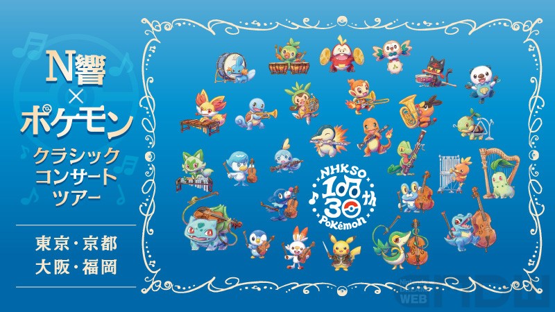 誕生から30年を迎える「ポケットモンスター」シリーズと、同じく2026年に創立100周年を迎えるNHK交響楽団(N響)によるコラボレーションコンサート。2026年8月21日の東京芸術劇場での公演を皮切りに、東京・京都・大阪・福岡の全国4会場にて開催されます。
