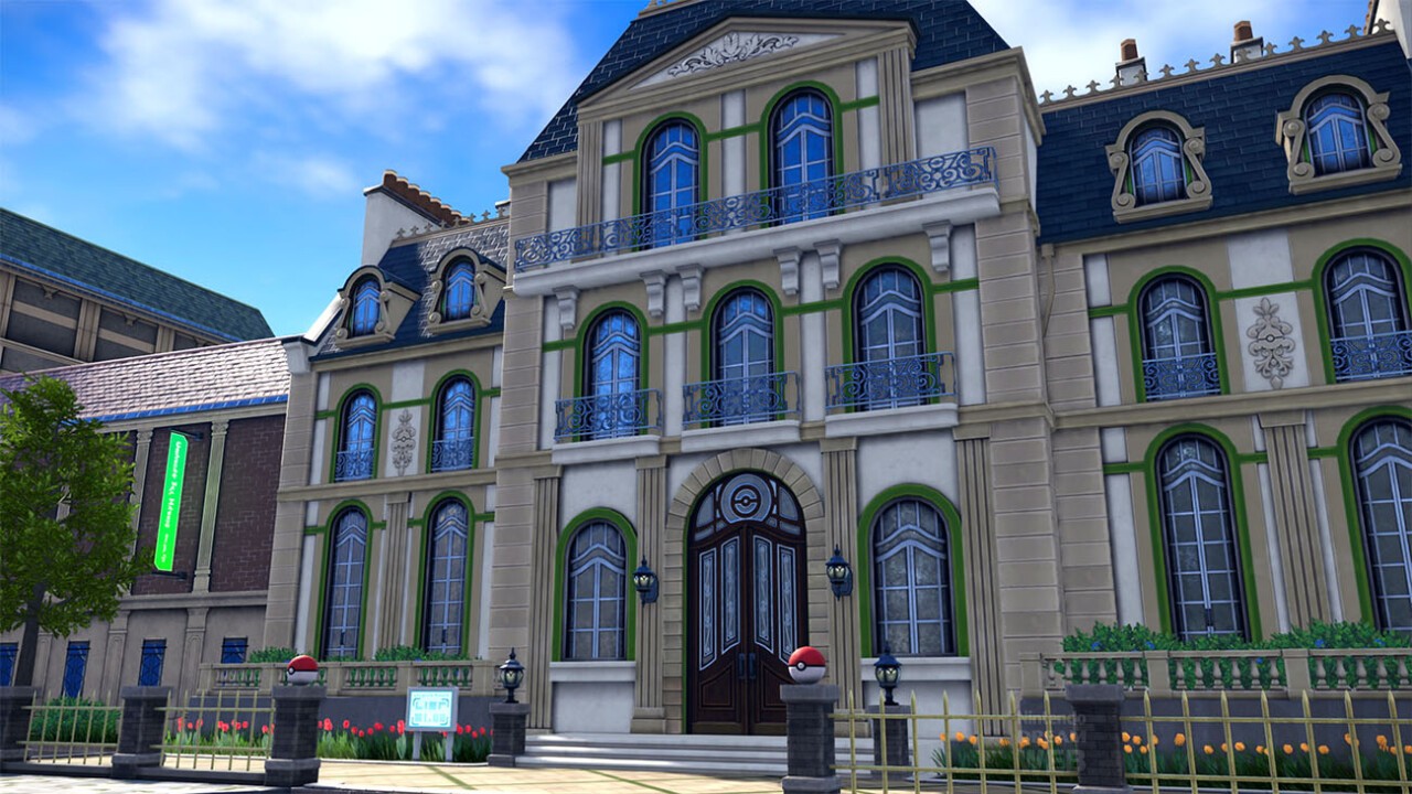 冒険の舞台は、人とポケモンが共存する街を目指し、大企業の「クエーサー社」により、都市再開発が進む「ミアレシティ」。2013年に発売された『ポケットモンスター X・Y』に登場するミアレシティと比べてみると、街中には草木が増え、最新のテクノロジーを感じさせる設備が見られます。