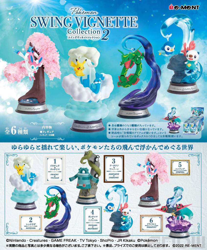 リーメントより、ポケモンたちの飛んで浮かんでめぐる世界がかわいい「ポケットモンスター SWING VIGNETTE Collection」シリーズの第2弾が発売になります。ゆらゆらと揺れるポケモンたちの置き型フィギュアです。