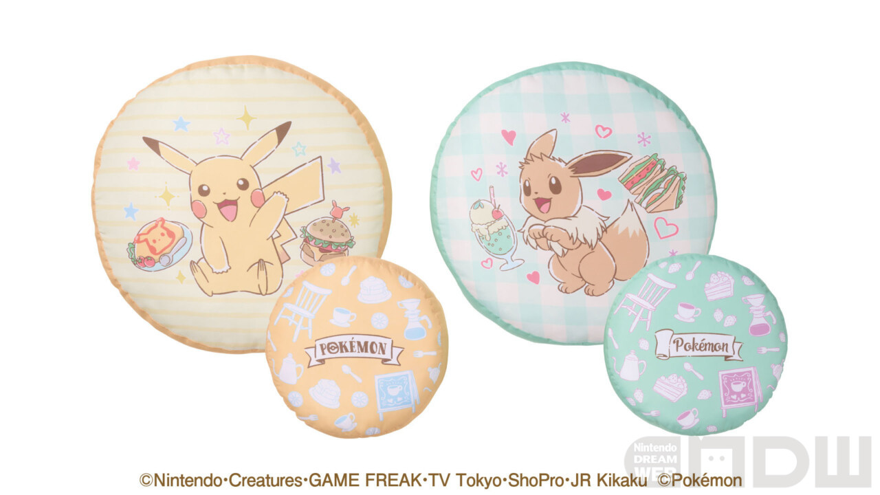 キャンペーン期間中には、「ナムコくじ」の賞品と同じ淡い色味のピカチュウとイーブイのぬいぐるみやクッションが登場します。