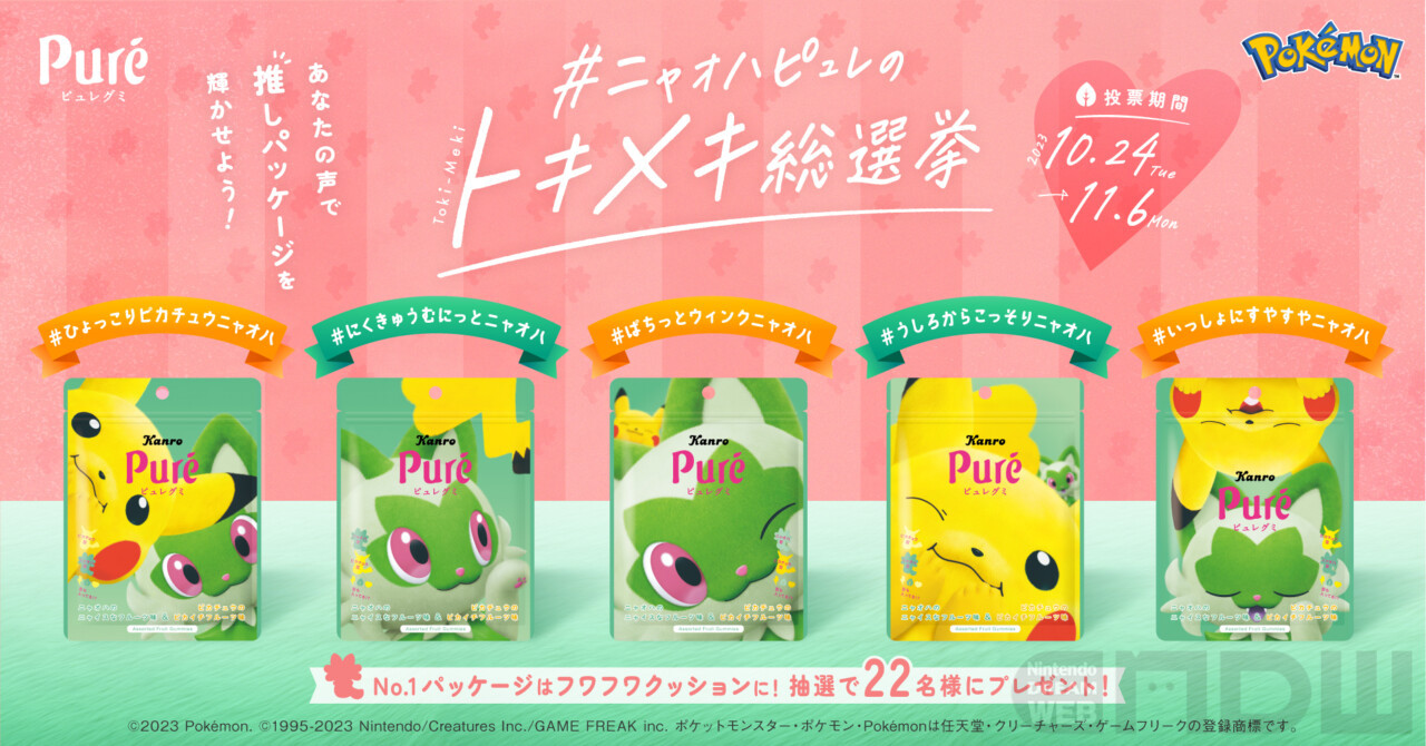 ピュレグミポケモン第7弾の発売を記念して、「#ニャオハピュレのトキメキ総選挙」がSNSで開催されます。