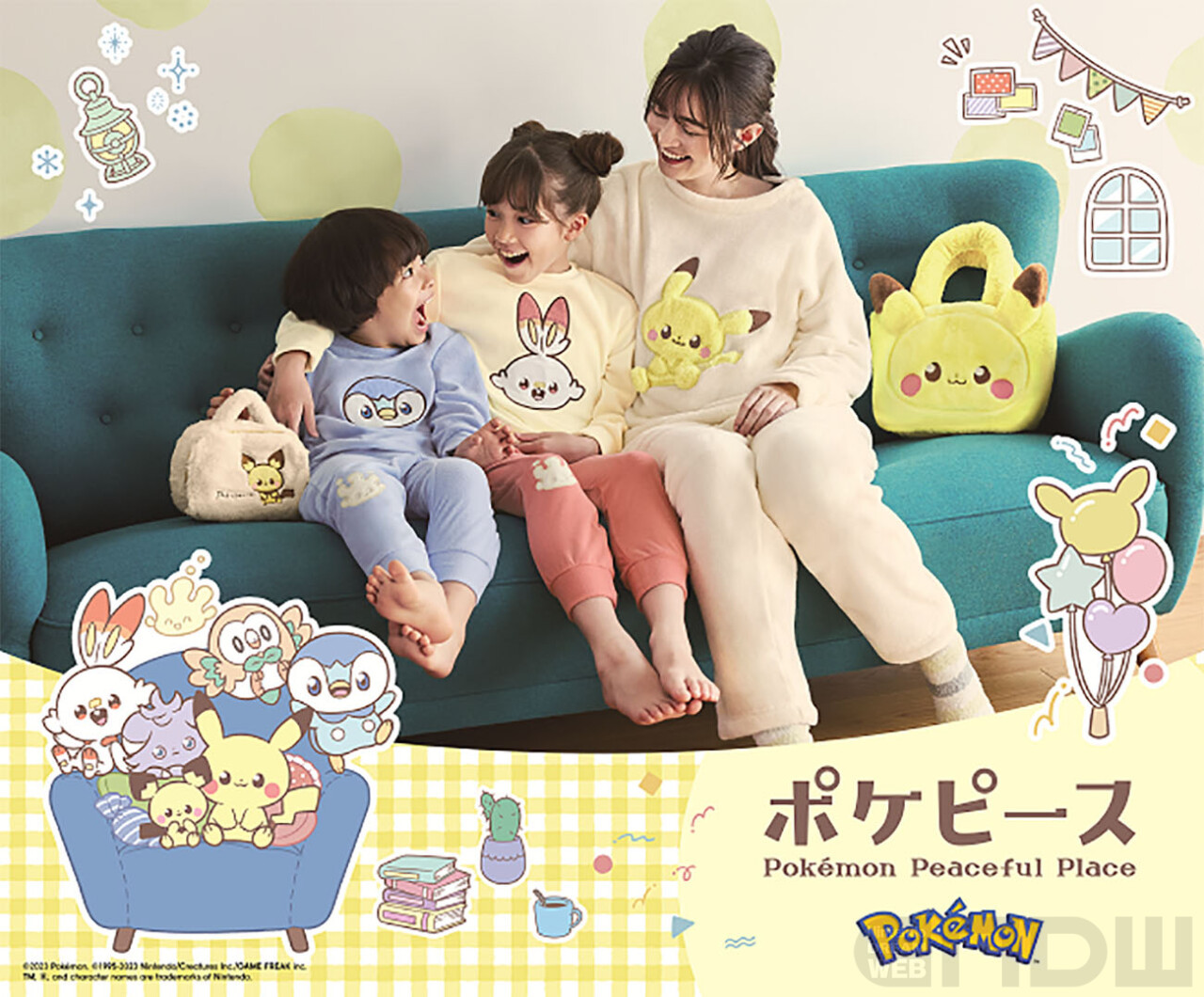 今回のコラボレーションは、ポケモンたちの、“ピース”なくらしをのぞける「ポケピース」とのコレクションとなっています。「ポケピース」の舞台であるシェアハウスから着想された、お家で楽しむラウンジウェアや、ふわふわなはき心地のルームソックスなどが展開されます。(以下リリースより)