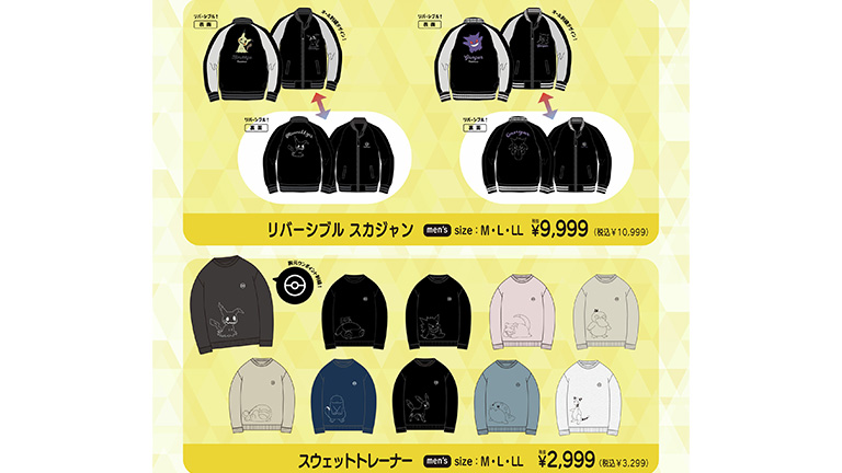 ドン・キホーテから発売中の「ポケットモンスター」を題材にしたアパレルアイテム、今回はスカジャン、トレーナー、スウェットが登場します。