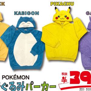 全国のドン・キホーテ/アピタ/ピアゴより「ポケットモンスター」を題材にしたアパレルアイテムが発売されます。今回展開されるのはボア上下セットです。すべてM、L、LLのサイズ展開。価格は各4,399円(税込)。