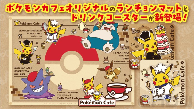 ポケモンカフェにて、オリジナルデザインのランチョンマットとドリンクコースターが新登場