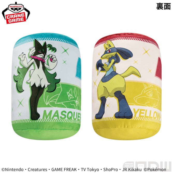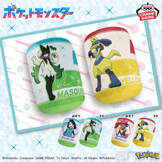 リコ&マスカーニャ、ロイ&黄色いルカリオの円柱型クッション(全2種)が、2025年10月23日(木)より順次登場予定です。