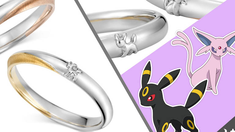 • エーフィ&ブラッキーのシルエットがデザインされたペアリング(結婚指輪)が発売