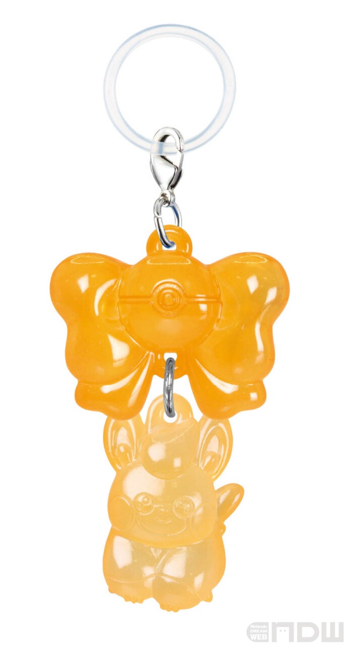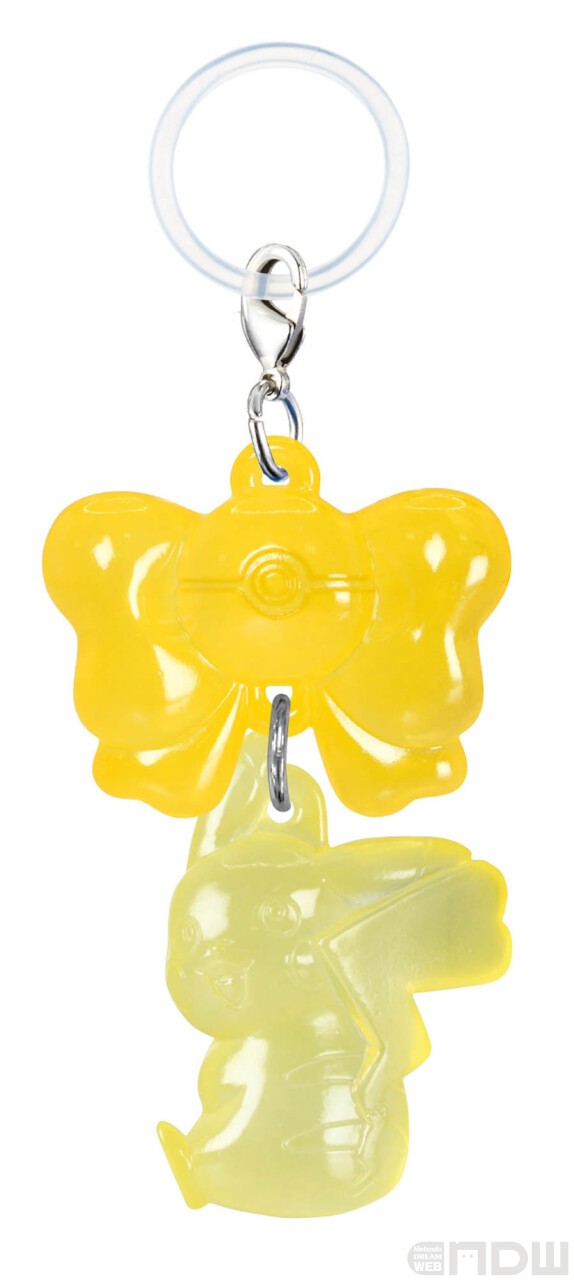 リボンがチャームポイントのキャンディのような質感のマスコット。リボンの中央はモンスターボールのデザインになっています。2連なので、カバンなど、どこにつけてもゆらゆら揺れて楽しめます。