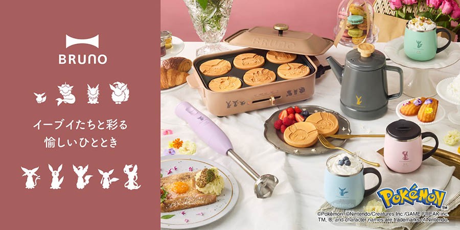 ⼤⼈を愉しむライフスタイルブランド「BRUNO(ブルーノ)」より、ポケモンデザインのキッチンアイテム第3弾として、イーブイフレンズデザインが11月21日(金)に4種類登場。11月14日より先行予約も開始されています。