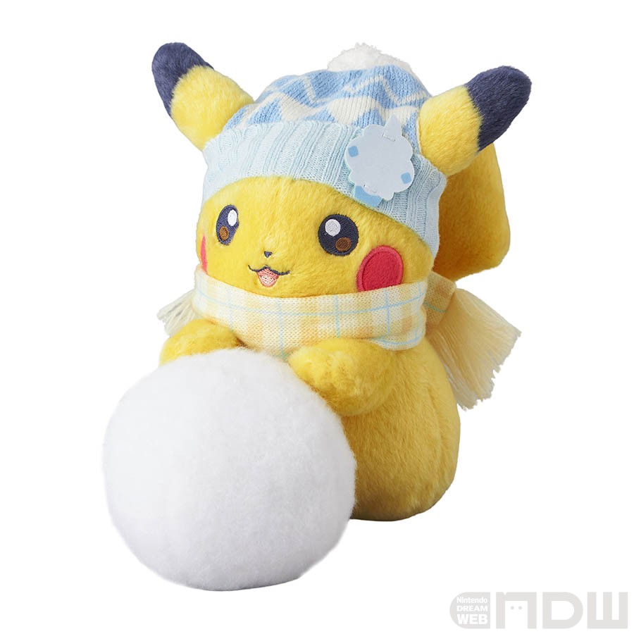 「ゆきだるまぬいぐるみ」と衣装を着せてもらった「ピカチュウのぬいぐるみ」の全4種