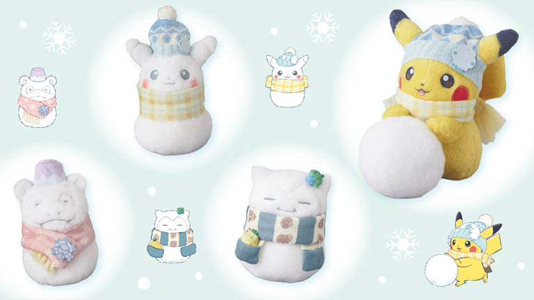 ピカチュウ・ヤドン・カビゴンのゆきだるまをイメージしたぬいぐるみと、雪遊びをしているピカチュウのぬいぐるみが 11月29日(土)よりポケモンセンターに登場