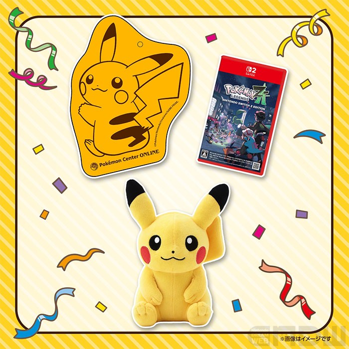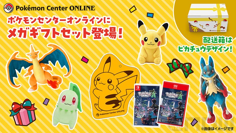 ピカチュウのダイカットギフトバッグに入った『Pokémon LEGENDS Z-A Nintendo Switch 2 Edition』と、ポケモンセンターオリジナルのグッズを、専用配送箱でお届けする「メガギフトセット」の予約が始まっています。