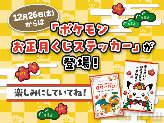 12月26日~2026年1月25日の間、合計4,000円(税込)以上の買い物で「ポケモン お正月くじステッカー」をプレゼント