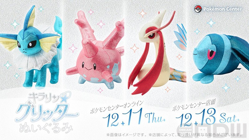 12月13日(土)より、キラキラ光輝く「キラリン☆グリッターぬいぐるみ」がポケモンセンターに登場します。