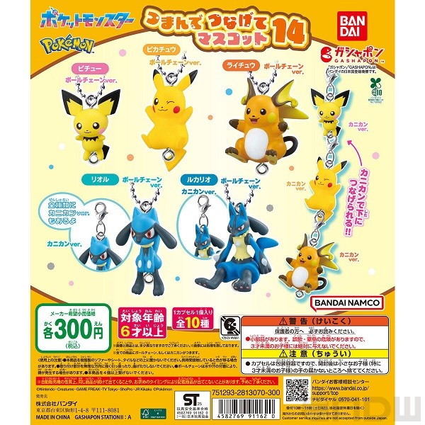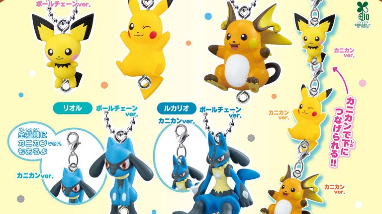 つままれポーズがかわいい、「つまんでつなげてマスコット」シリーズの第14弾が登場。ラインナップは全10種で、ピチュー、ピカチュウ、ライチュウ、リオル、ルカリオが、それぞれボールチェーンver.とカニカンver.の2種で展開されます。