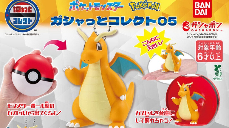 90mmカプセル「ガシャっとコレクト」第5弾が登場します。約6.5cmのビッグサイズのカイリューに、約4cmサイズのイーブイ、ヤミラミ、ヌオー、サーフゴーの全5種類。
