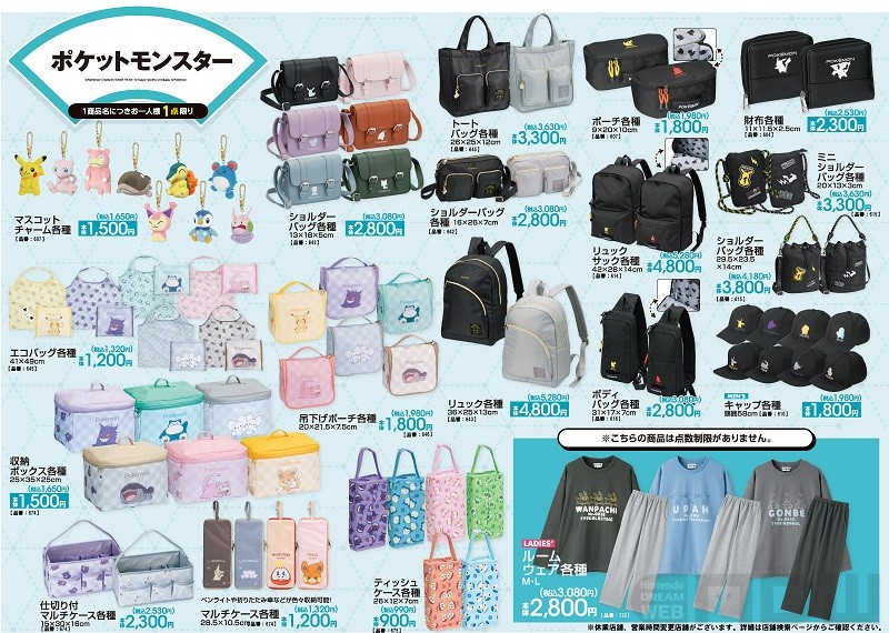 今回販売されるのは、マスコットチャームやバッグ、キャップ、各種アパレルなどさまざま。ルームウェア以外は1商品につき一人1点となるのでご注意ください。取り扱い店舗はこちら。