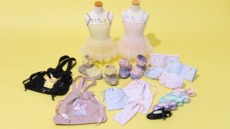 “ポケモンと一緒なら、毎日がもっと楽しく。”をコンセプトに、バレエの世界観とポケモンの魅力を組み合わせた9種の商品をラインナップ。商品にはピカチュウ、イーブイ、キルリア、スワンナ、ニンフィアのデザインが取り入れられています。