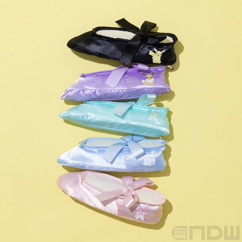 5匹のポケモンをそれぞれをデザインしたトゥシューズ(ポワント)型のポーチ。