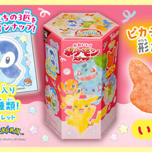 みずタイプのポケモン(ゼニガメ、カメール、カメックス)、でんきタイプのポケモン(ピチュー、ピカチュウ、ライチュウ)を円柱缶にデザインし、クランベリーチョコレートとペカンナッツチョコレートを詰めたセット。