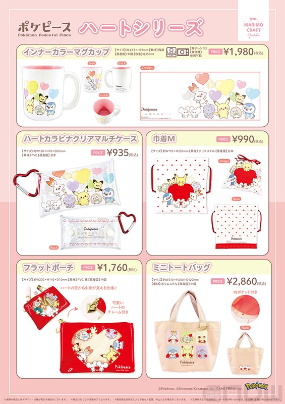株式会社マリモクラフトより、ハートモチーフの「ポケピース」グッズが順次発売されます。発売は3月上旬ごろです。