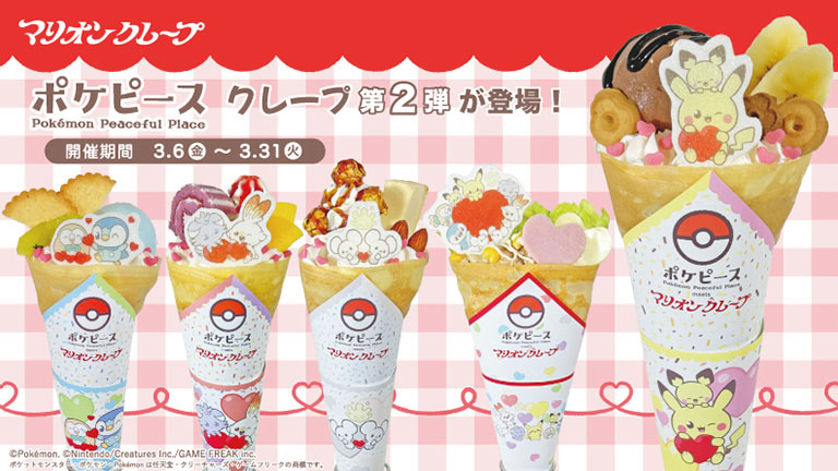 3月6日(金)~31日(火)まで、マリオンクレープからポケピースクレープの第二弾が登場!