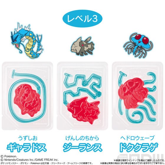 釣り上げるのは、さまざまな“わざ”を放つポケモンたち。3段階のレベルが用意されており、高いレベルほど釣り上げるのが難しくなっています。ラインナップはコイキングやギャラドスなど全12種類(シークレット含む)。
