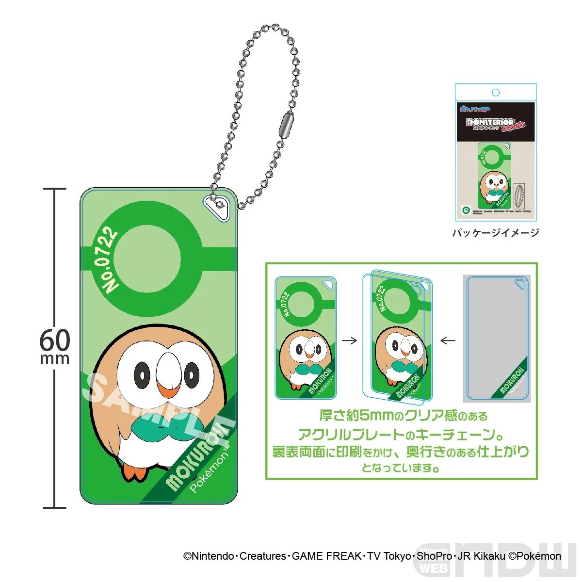 厚み5mmのアクリルプレートに、表面と裏面から印刷された奥行きとクリア感のあるのキーチェーン。全6種で、価格は各825円(税込)。