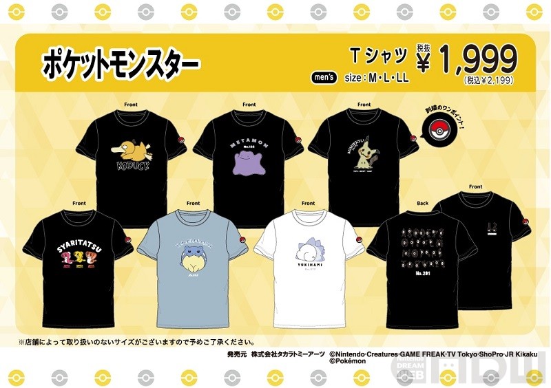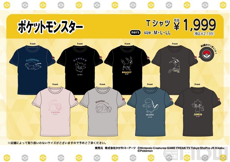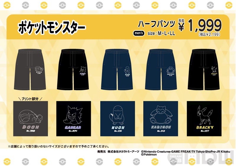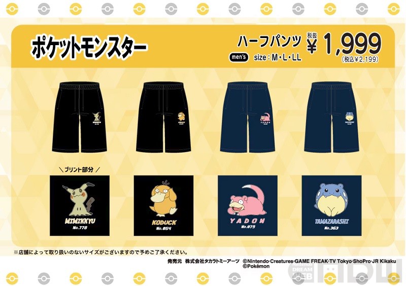 今回販売されるのは、ポケモンをワンポイントにデザインしたTシャツとハーフパンツ。サイズはすべてM、L、LLの3サイズ展開で、価格は各1,999円(税込)。