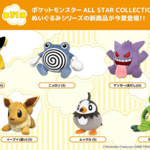 三英貿易が展開する、ポケモンの姿を忠実に再現したコレクション性の高いぬいぐるみ「ALL STAR COLLECTION ぬいぐるみ」のミニサイズシリーズ「ALL STAR COLLECTION マスコット」。7月下旬に第9弾が登場します。