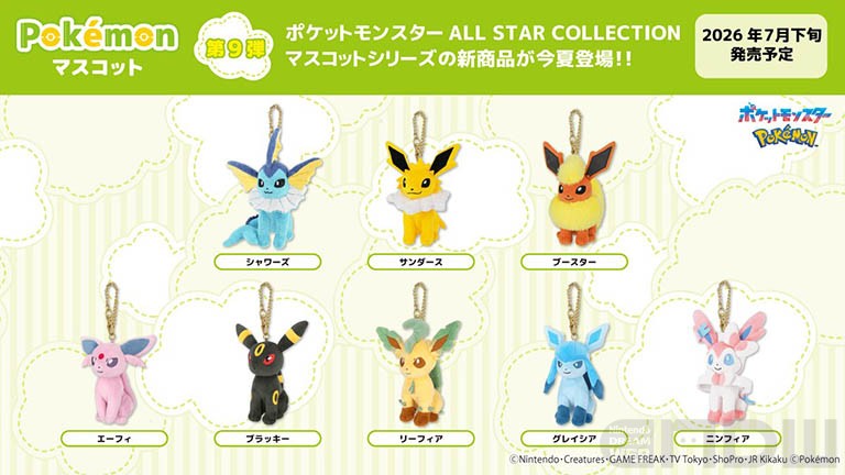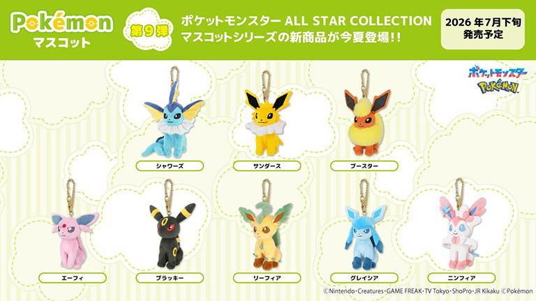 • イーブイの進化系がラインナップに!「ポケットモンスター ALL STAR COLLECTION マスコット」第9弾が26年7月下旬に登場