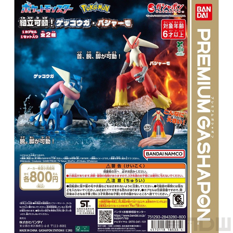 90mmカプセル商品「ポケットモンスター 組立可動!」の第6弾に、ゲッコウガとバシャーモが登場!高さ約10cmというビッグサイズ&ハイクオリティなフィギュアで、腕・脚などが可動します。