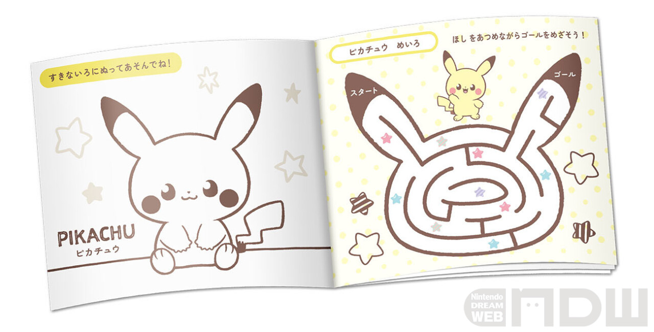 かわいいポケモンたちのぬりえ&シール、「迷路」や「点つなぎ」「あみだくじ」などのゲームがセットになったオリジナルブック全6種。