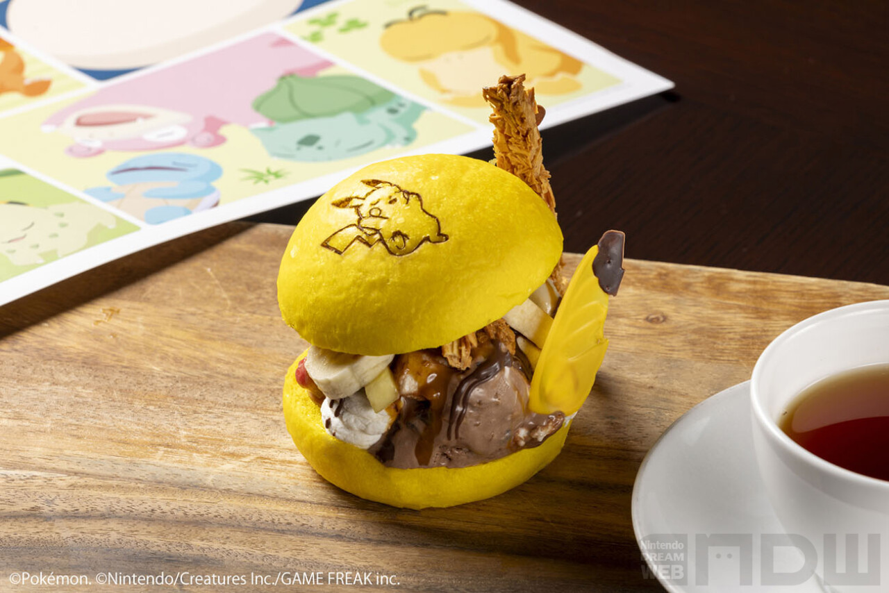 ピカチュウの耳や尻尾をイメージしたデコレーションで飾りつけ、食べ応えのあるデザートバーガーに仕上げています。