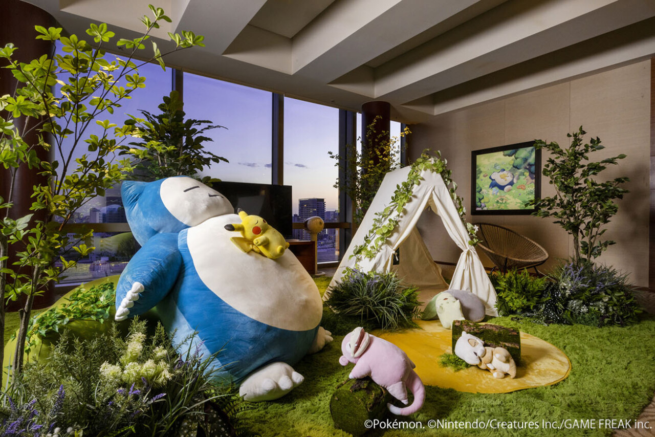 ゲームアプリに登場する「ワカクサ本島」を「チェアマン スイート」に表現。ほぼ等身大カビゴンをはじめ、ピカチュウなどのぬいぐるみがデコレーションされているほか、このスイート限定で『ポケモンスリープ』のイラストが各所に展示されます。