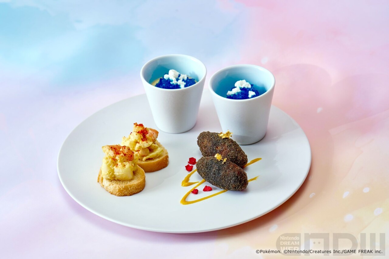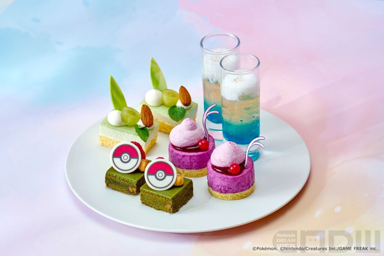 一皿でイーブイからニンフィアへの進化を表現した特製スイーツ。