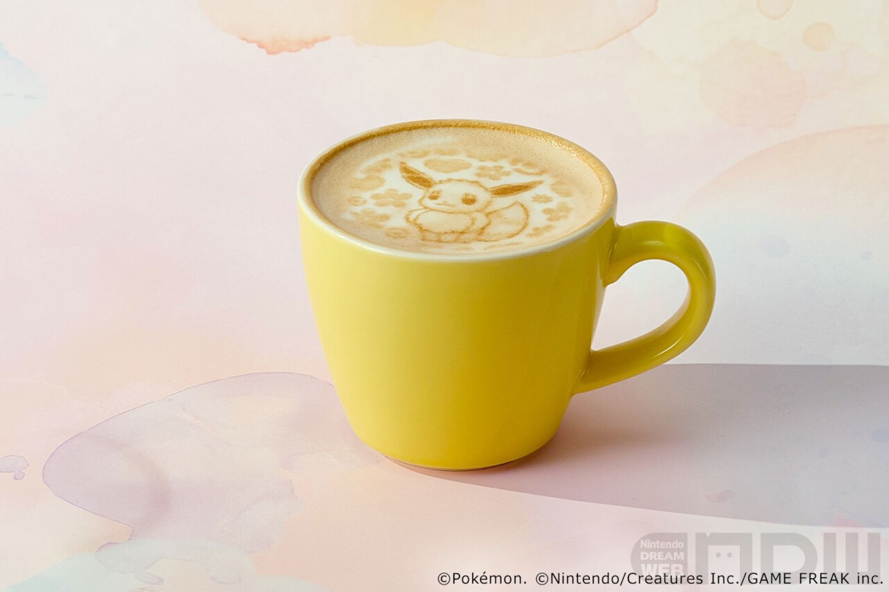 ・イーブイ アート ・カフェ・ラテ:イーブイのアートが入ったカフェ・ラテ。エスプレッソの香り高く、ミルクのまろやかさが際立つ上質な味わいです。