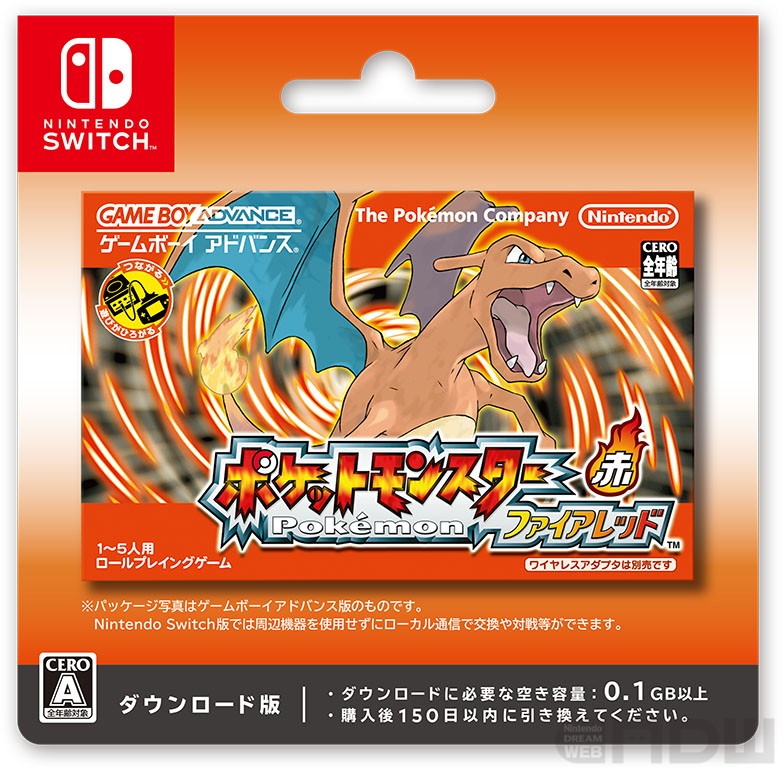 Nintendo Switchソフト『ポケットモンスター ファイアレッド・リーフグリーン』ダウンロードカードは、発売当時のパッケージデザインが再現されています。