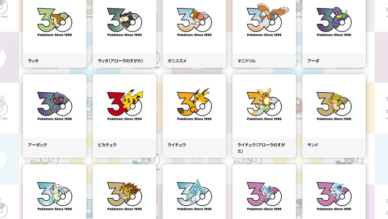 「30」部分もポケモンごとに凝ったデザインとなっており、好きなポケモンを探してみてはいかがでしょうか。