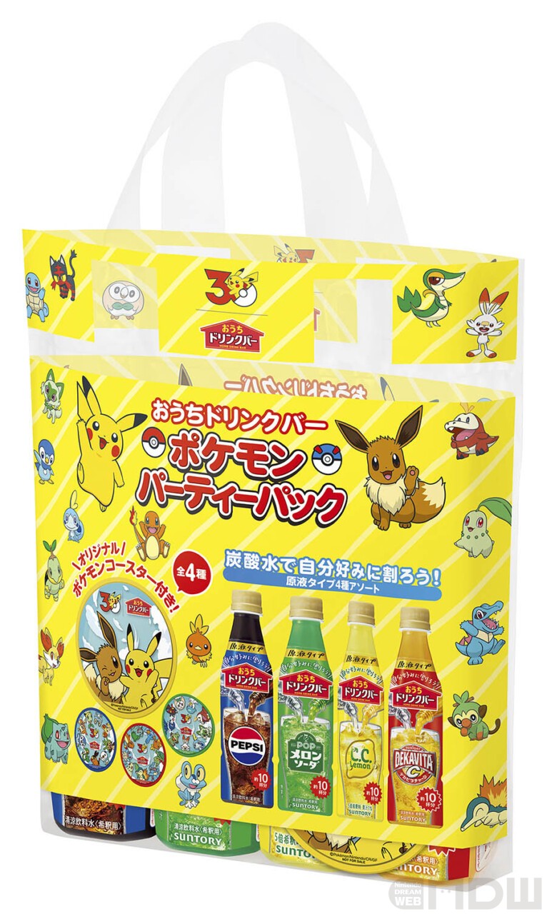 4月28日(火)からは、ポケモン30周年とタイアップしたオリジナルラバーコースター付きの「おうちドリンクバー パーティーパック」が全国で数量限定発売されます。