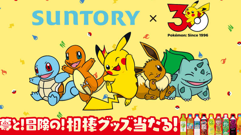 サントリーは、2026年2月に迎えた「ポケモン」30周年を記念し、年間を通じてさまざまなタイアップ施策を展開することを発表しました。その第一弾として、4月27日(月)よりオリジナルグッズが当たるキャンペーンが開始されるほか、4月28日(火)からは限定ノベルティ付きのセット商品も発売されます。