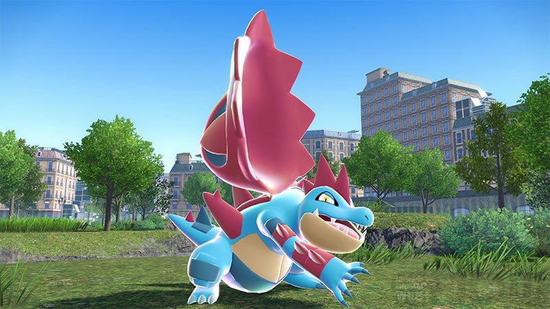 メガオーダイルは、メガシンカによって、みず・ドラゴンタイプとなりました。背びれの巨大化により、噛み砕く力が大きく向上しましたが、他にも機能が備わっていると考えられています。一つは防御面のパワーアップです。大きく硬いひれで頭を覆うことで、物理的な攻撃のダメージを軽減します。もう一つは放熱効果の向上です。メガオーダイルは背びれを使って放熱することで、メガシンカにより急上昇した体温を下げています。