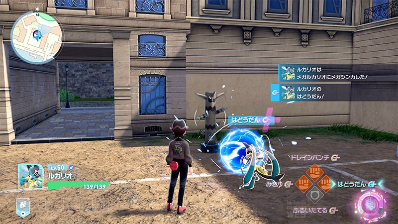 『Pokémon LEGENDS Z-A』には「メガルカリオ」が登場していましたが、『Pokémon LEGENDS Z-A M次元ラッシュ』には新たに「メガルカリオZ」が登場。Zと名のつくメガシンカは、指示を受けてから技を出すまでの溜め時間が短くなります。そのかわりメガエネルギーの消耗が激しく長期戦には向かないため、短期決戦が望ましいようです。