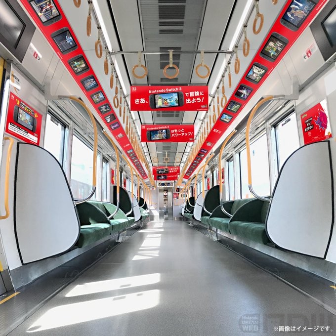 現在、1編成車内がまるごと『Pokémon LEGENDS Z-A』とNintendo Switch 2 に染まり運行されています。