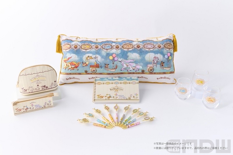 ブイブイヴォヤージュ」をテーマにしたグッズも公開されました。クラシカルな世界観をアートにした「クッション」「ポーチ」「ステーショナリー」「グラス」の4種がラインナップされています。