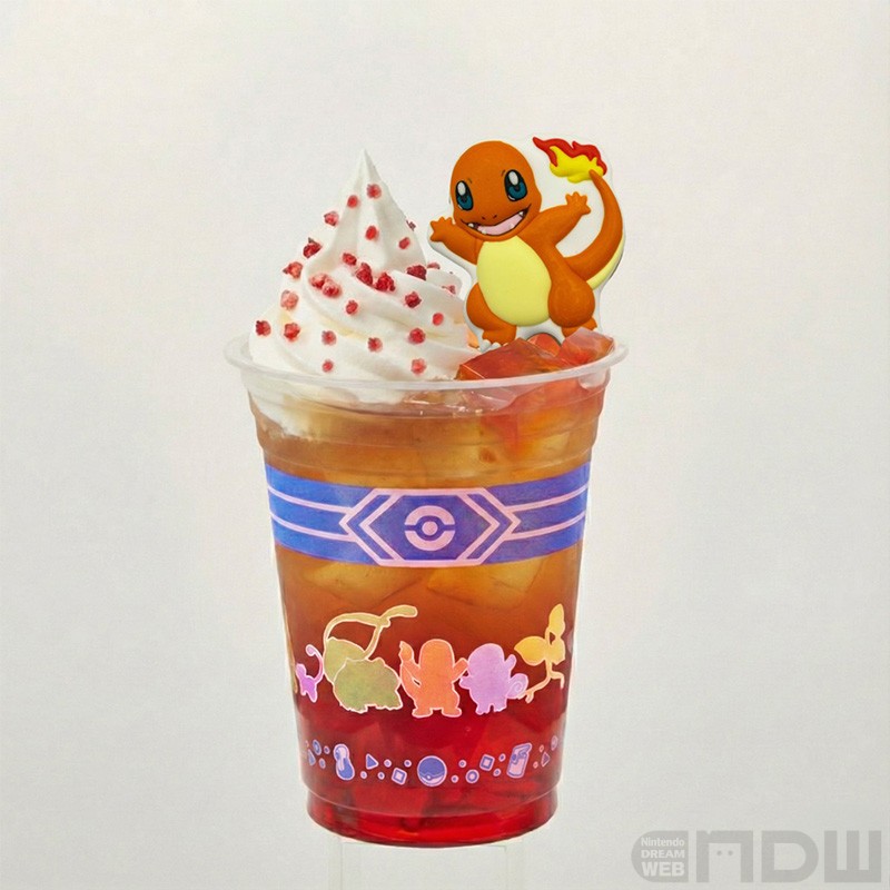フシギダネ・ヒトカゲ・ゼニガメがわざを出している様子をイメージしたスペシャルドリンクを販売。