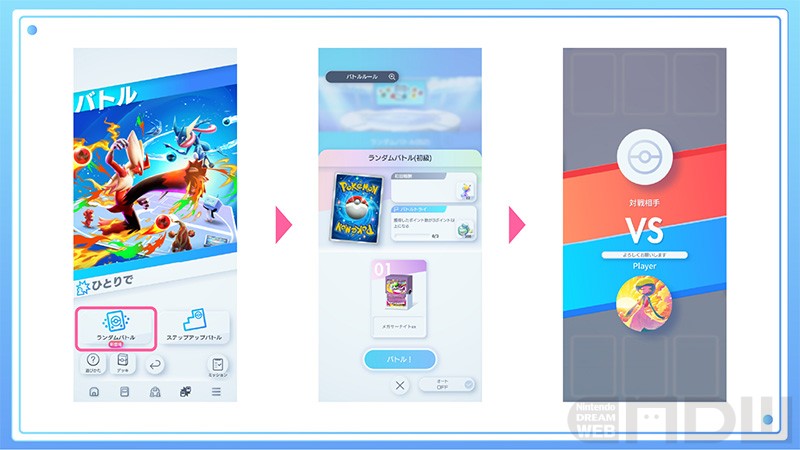 「ひとりで」のバトルに「ランダムバトル」が追加されます。勝負が始まるまで対戦相手のデッキが分からないバトルになっていて、新しいデッキを試してみるのにおすすめです。