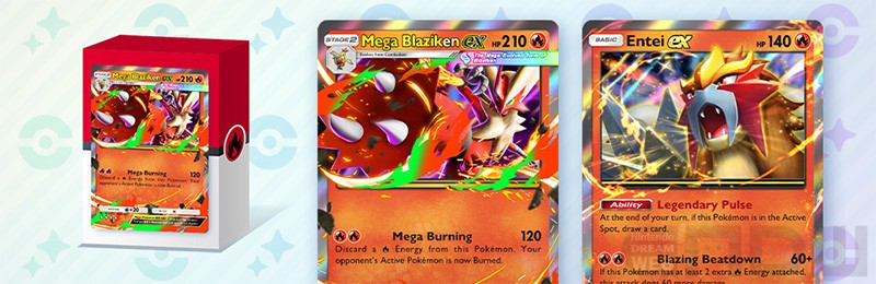 この「エリートデッキ」は、拡張パック「メガライジング」で登場した「メガバシャーモex」、テーマ拡張パック「未知なる水域」で登場した「エンテイex」が収録されており、すぐにバトルで活用できる炎タイプのデッキです。エリートデッキを手に入れて、バトルに活用してみてくださいね。