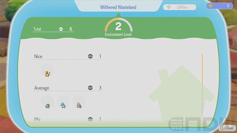 そして、マイナスボタンを押すと確認できる「Enviroment Level(環境レベル)」は、出会ったポケモンが適した環境で暮らせているかが分かるようになっています。