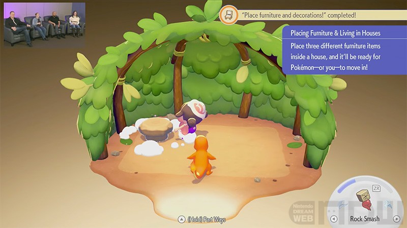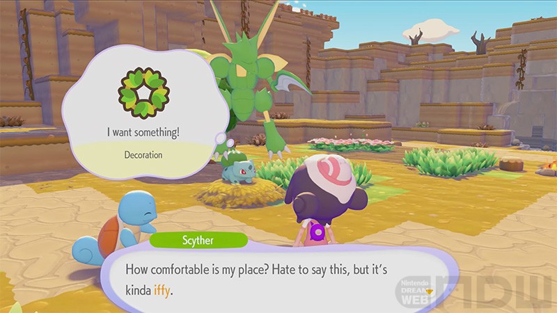 ストライクに「すみごこちはどう?」と尋ねて、「装飾家具がほしい」とお願いされるシーンも。こういった「おねがいごと」を叶えることで、ポケモンたちのすみごこちが上がるとのことです。